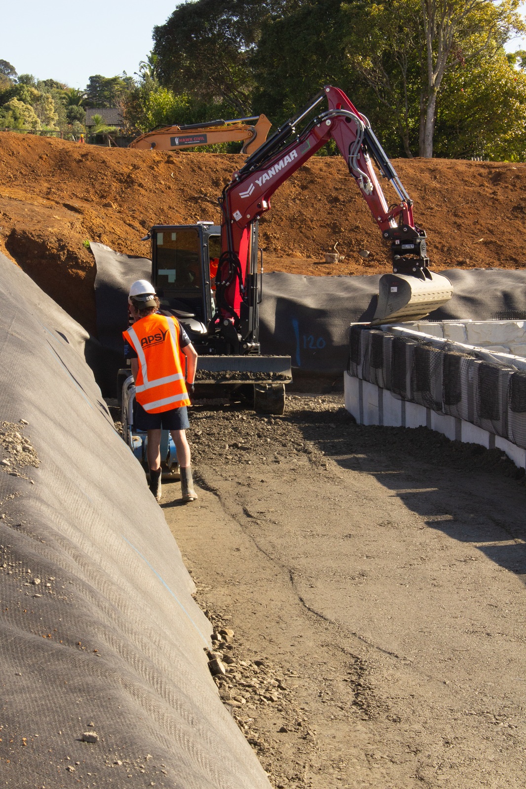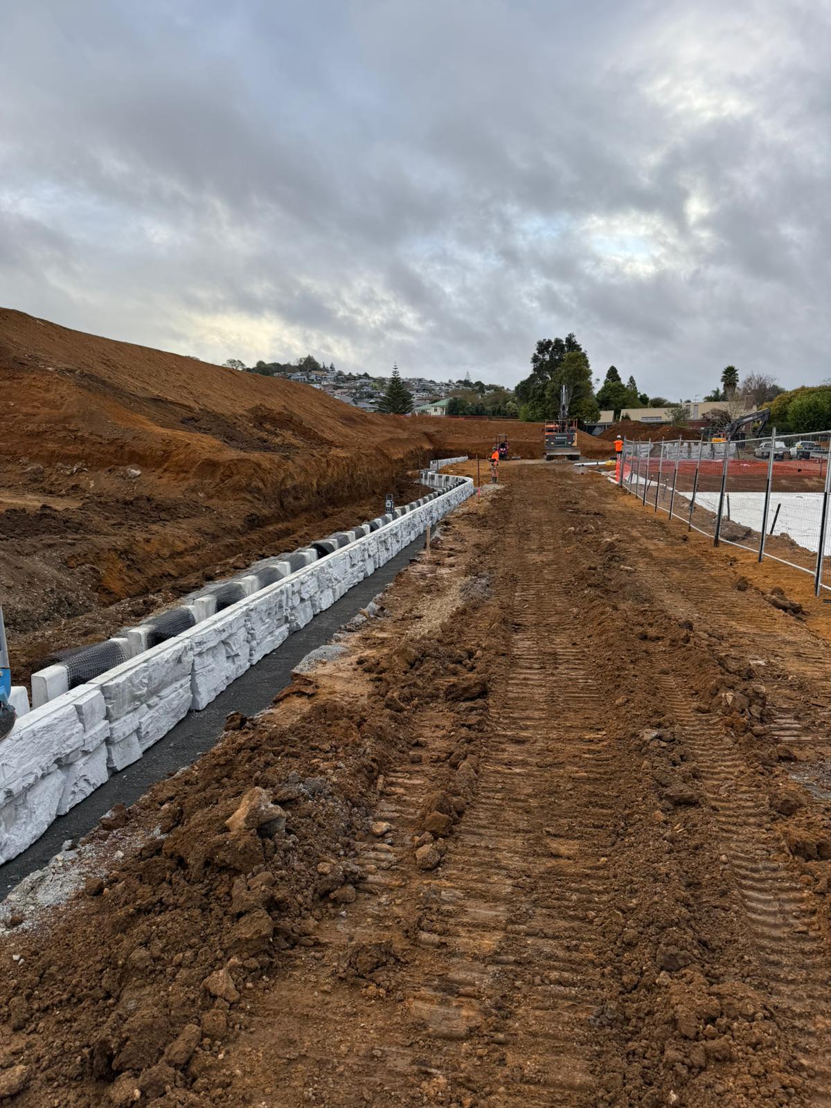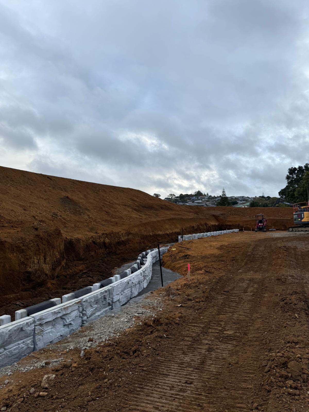 APS successfully delivered the construction of a 200+ metre Cirtex MagnumStone MSE (Mechanically Stabilised Earth) retaining wall as part of a newly developed retirement village. Varying in height from 1 to 4 metres, the wall incorporated multiple bends and straight corners, presenting both design and construction complexities. These challenges were met through precise execution and careful site management, resulting in a high-quality, durable outcome.